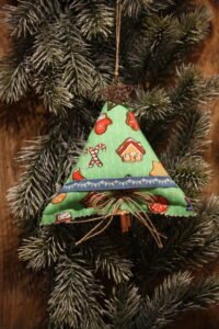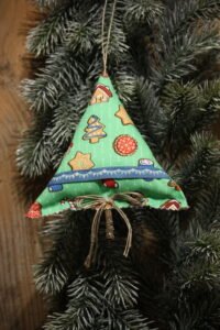 Petit sapin de Noël en tissu à suspendre au sapin ou ailleurs / Petit sapin en coton imprimé motif noël / Galon / Petite ficelle pour suspen …