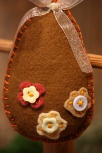 Suspension de Pâques – Oeuf de Pâques en feutrine marron décoré de fleurs – 2 –