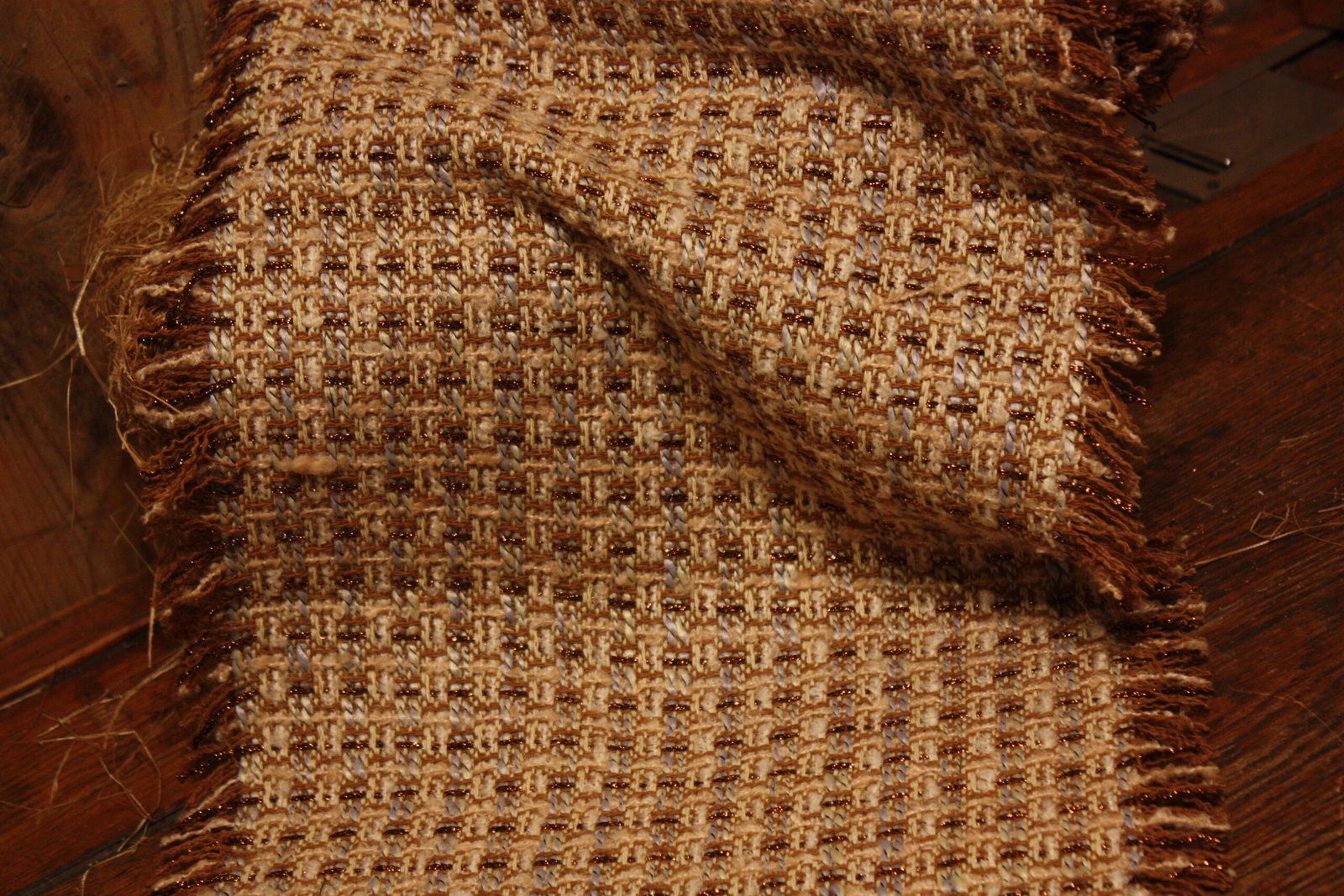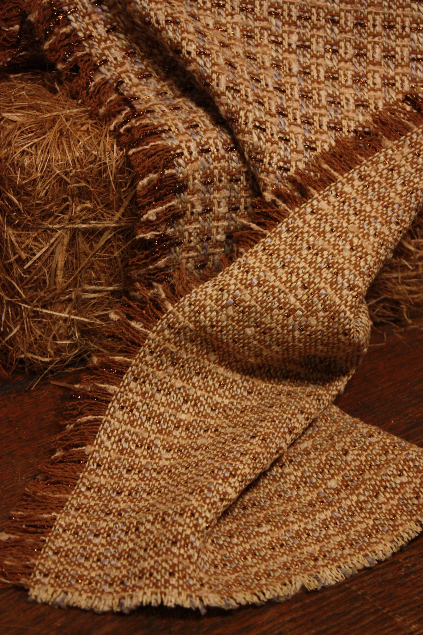 Ce chemin de table de Noël couleur camel/crème avec des fils cuivré métal produira un bel effet sous votre décoration ou en chemin de table sur vos tables d'hiver ou de Noël. Il peut être coupé à la taille souhaitée. Chemin de table 100% polyester